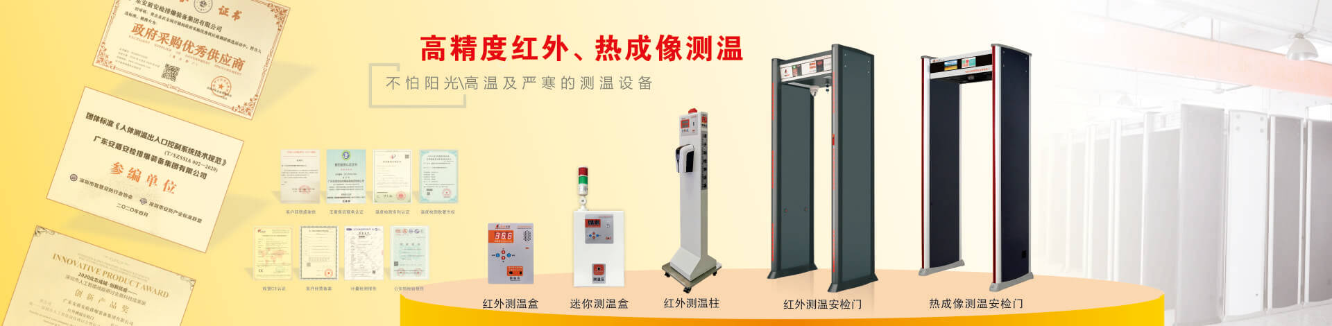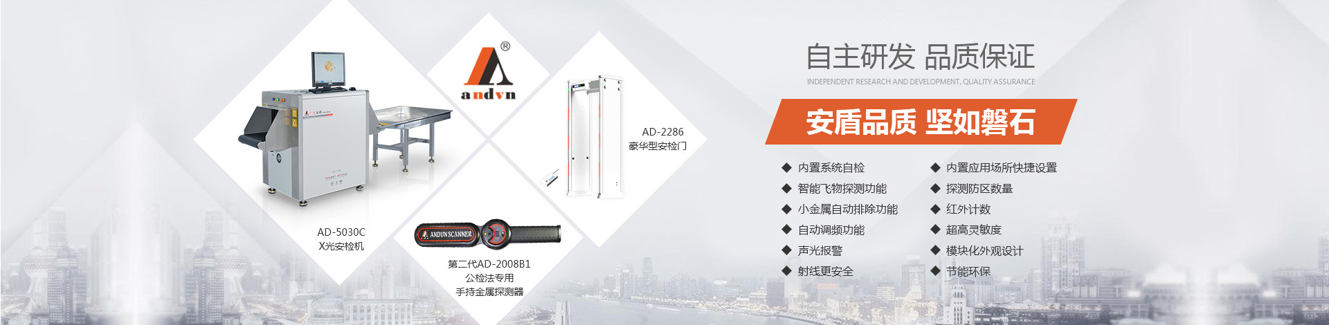 目前公司技術(shù)底蘊(yùn)日益豐厚,擁有多項國家專利,在產(chǎn)品開發(fā)和創(chuàng)新方面有較深的制造經(jīng)驗。“安盾品質(zhì) 堅如磐石”是安盾人永恒不變的發(fā)展理念,公司目前已通過國際質(zhì)量體系認(rèn)證、國際環(huán)境體系認(rèn)證、國際職業(yè)健康體系認(rèn)證、產(chǎn)品已通過國家安全防范報警系統(tǒng)檢測中心和公安部安全與用電子產(chǎn)品質(zhì)量檢測中心合格認(rèn)證,并取得所有型號檢測報告,《GB15210-2003通過式金屬探測門》標(biāo)準(zhǔn);并獲得國家高新技術(shù)企業(yè)認(rèn)證、國家AAA級信用認(rèn)證,歐盟CE認(rèn)證、ROHS認(rèn)證、美國FCC認(rèn)證、廣東職業(yè)衛(wèi)生檢測中心頒發(fā)的檢測報告、東莞市環(huán)境保護(hù)局頒發(fā)的《輻射安全許可證》,中國人民解放軍認(rèn)證產(chǎn)品、中華人民共和國進(jìn)出口企業(yè)、愛心公益企業(yè)等榮譽(yù)稱號;先后被當(dāng)選為中國安全防范產(chǎn)品行業(yè)協(xié)會會員單位、廣東安防行業(yè)協(xié)會理事單位、東莞市安防行業(yè)協(xié)會常務(wù)副會長單位、中國安檢排爆聯(lián)盟常務(wù)理事單位、連續(xù)五年榮獲廣東省守合同重信用企業(yè)、中國警用裝備十大品牌、中國十大特種裝備品牌、科技型中小企業(yè)、廣東省高新技術(shù)產(chǎn)品等榮譽(yù)稱號、安盾集團(tuán)平均每年服務(wù)至少200場大型活動安保任務(wù)。